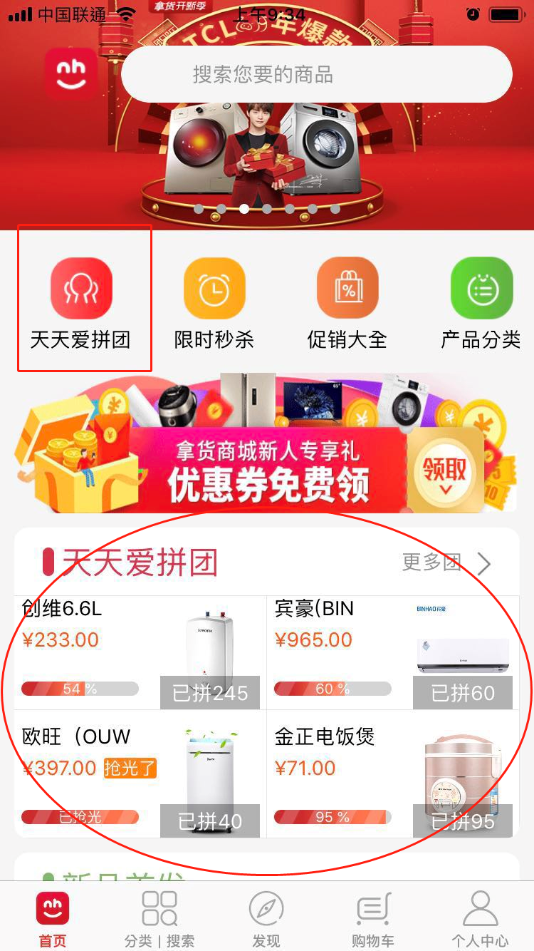 拼团活动是3.0版本新上线功能,拿货商城每天会发布不定数量的产品作为拼团活动,