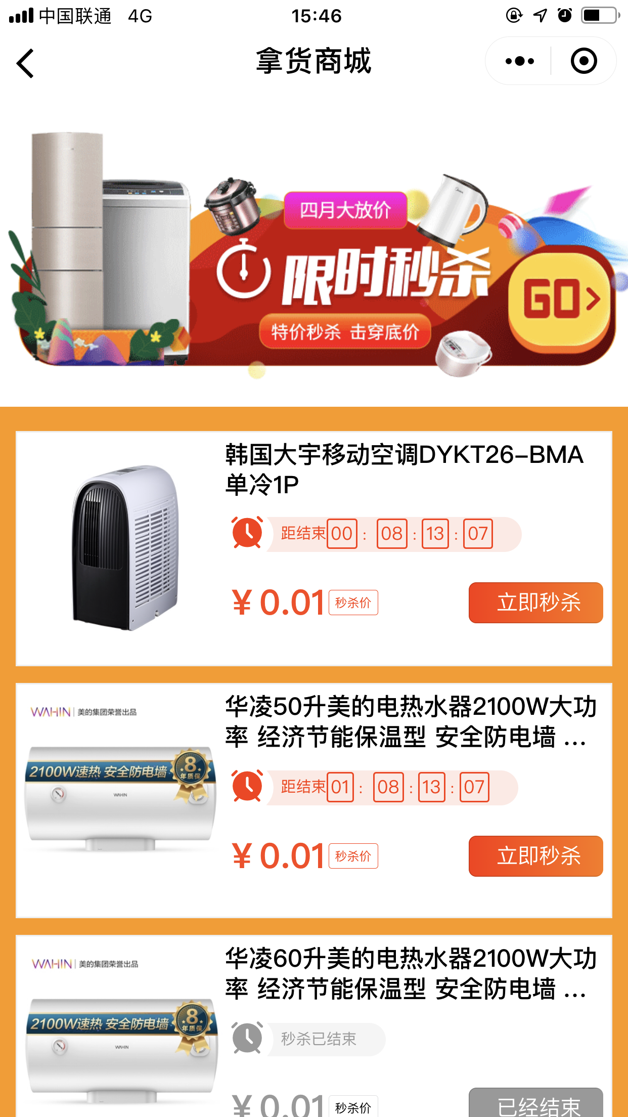 拿货商城会挑选出全国可发货且畅销的产品来做秒杀活动